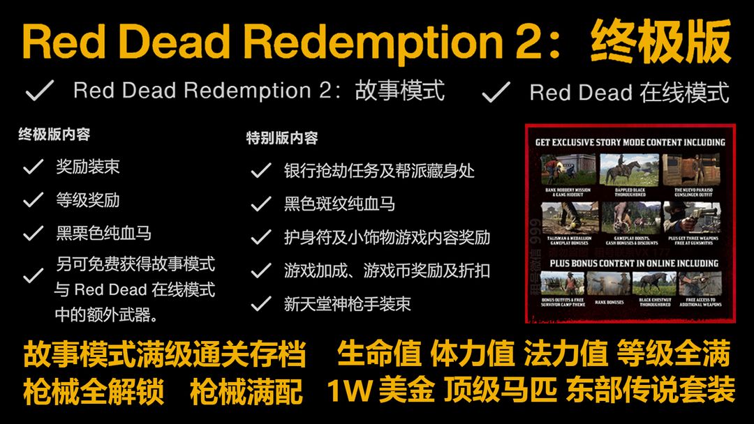 荒野大镖客2♋498元终极版⭐东部传说套装✅传说背包✅亚瑟属性全满⭐送满级存档